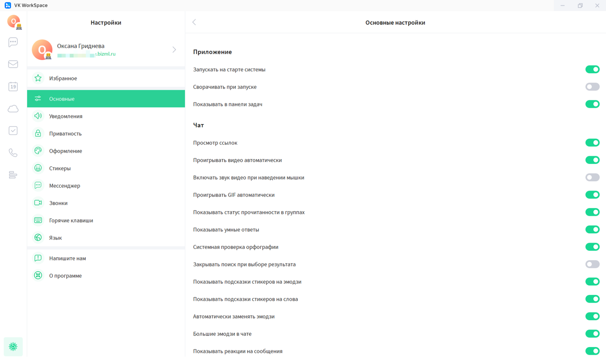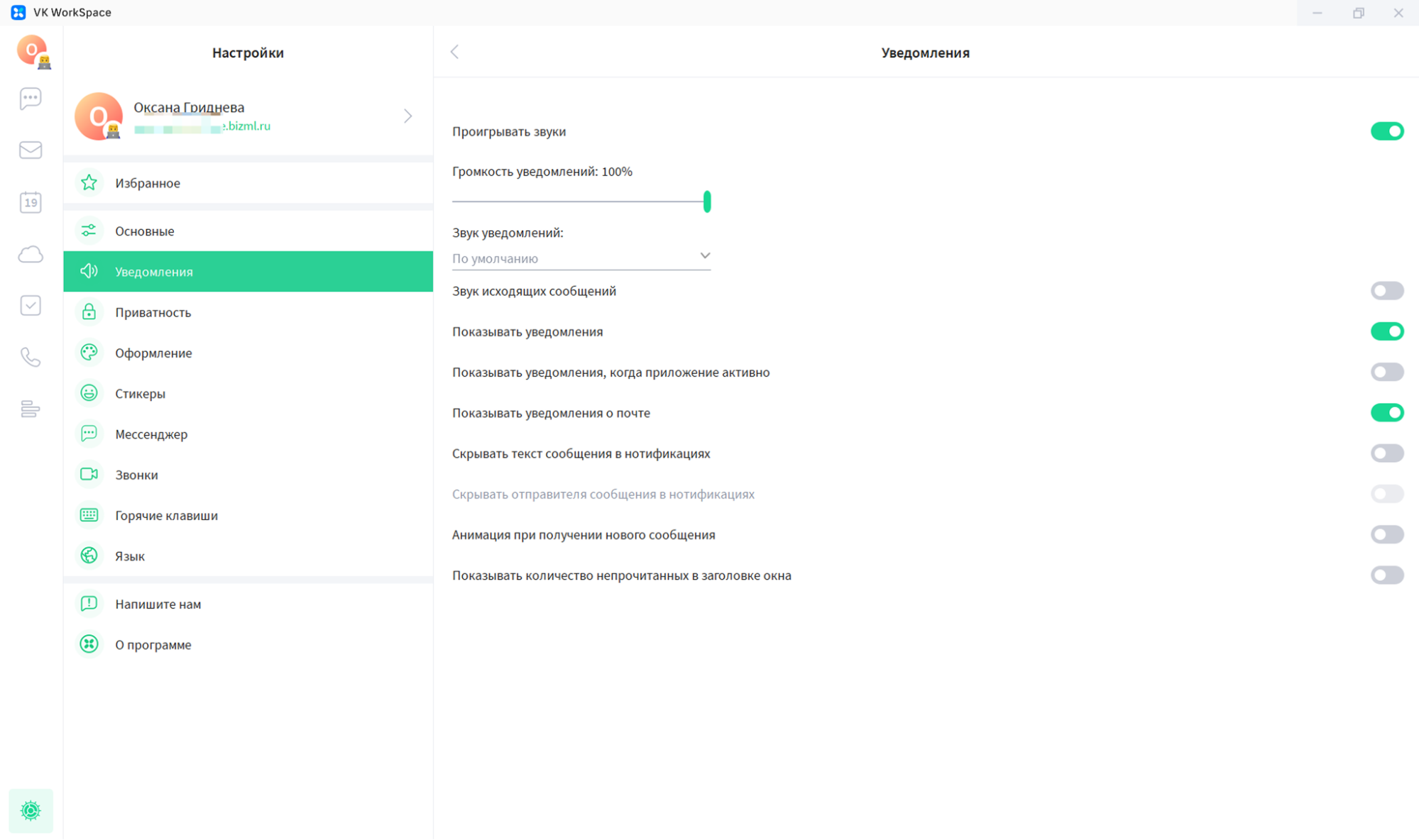 Рисунок 4. Настройки чата VK WorkSpace