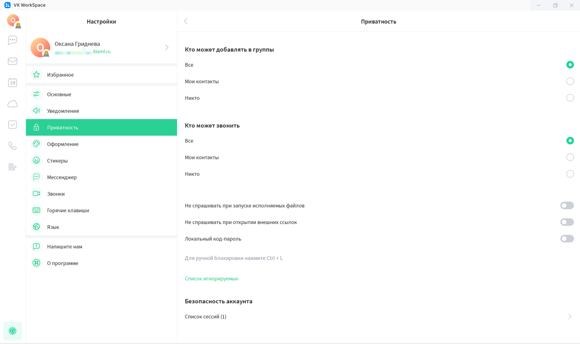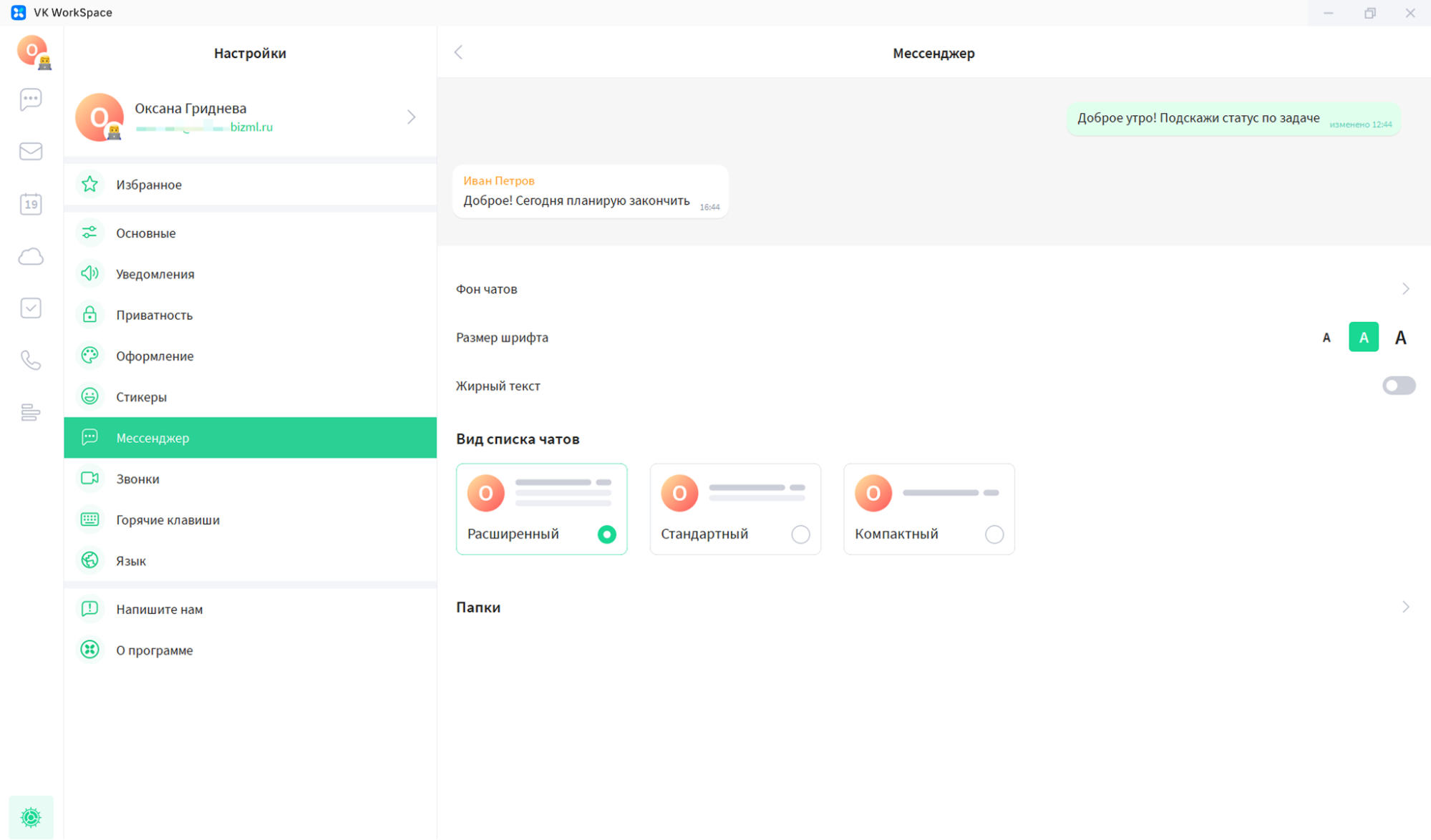 Настройки чата VK WorkSpace