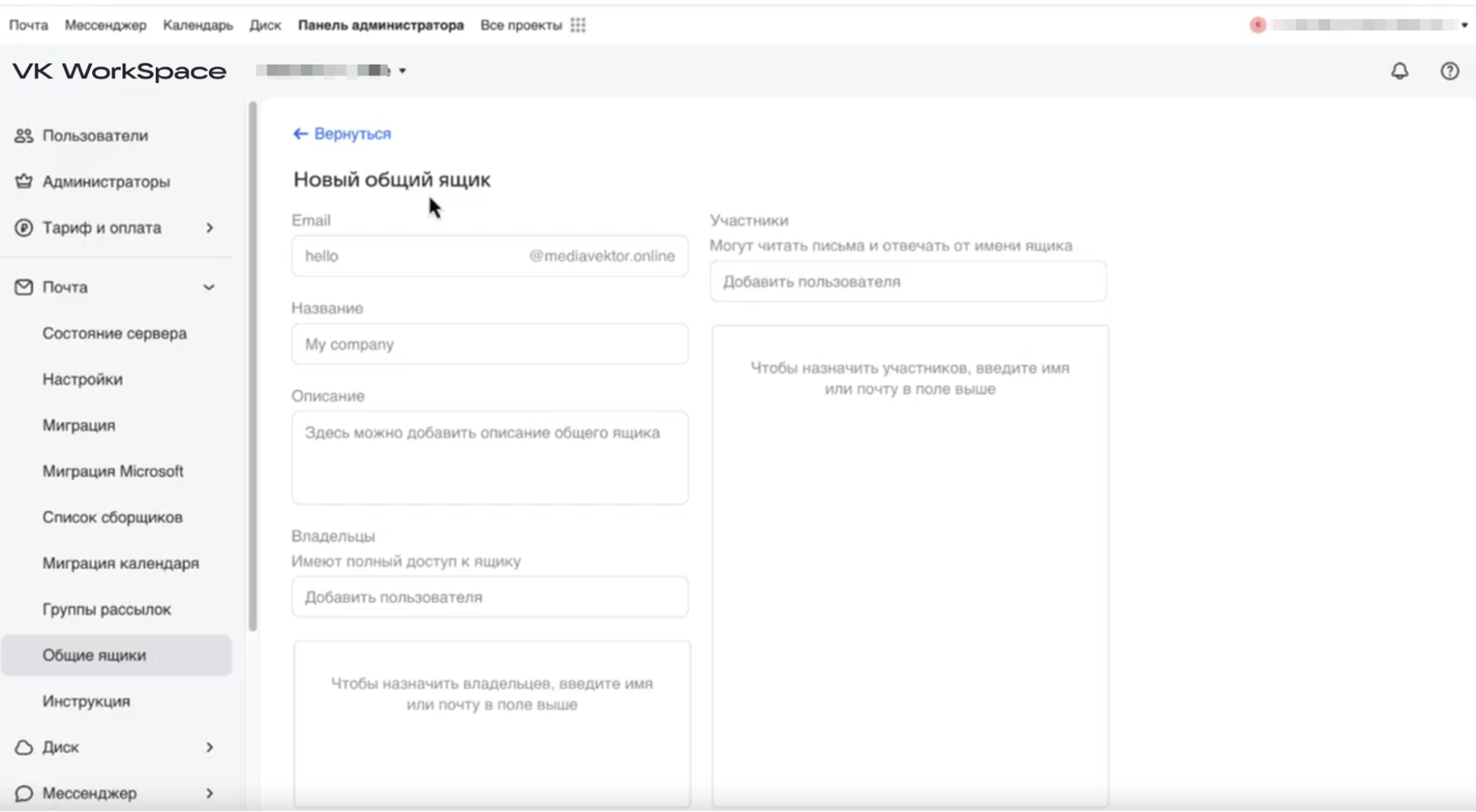 Почта VK WorkSpace