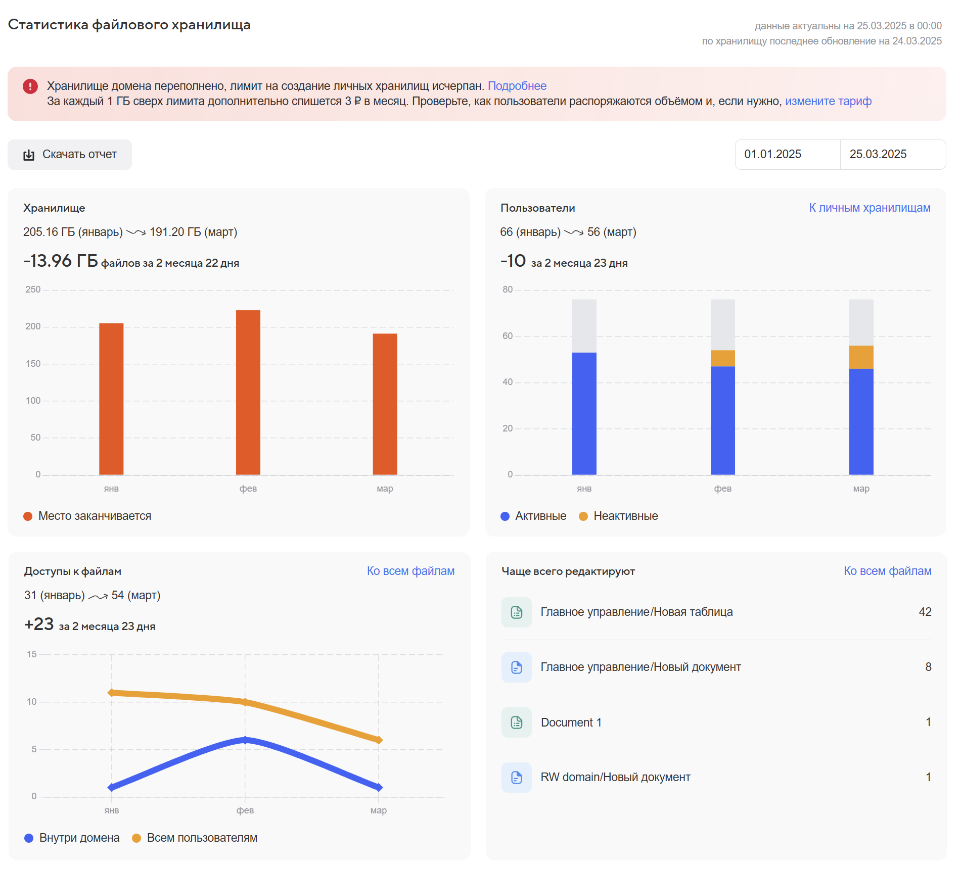 • единая панель администратора для управления пользователями и всеми сервисами платформы;