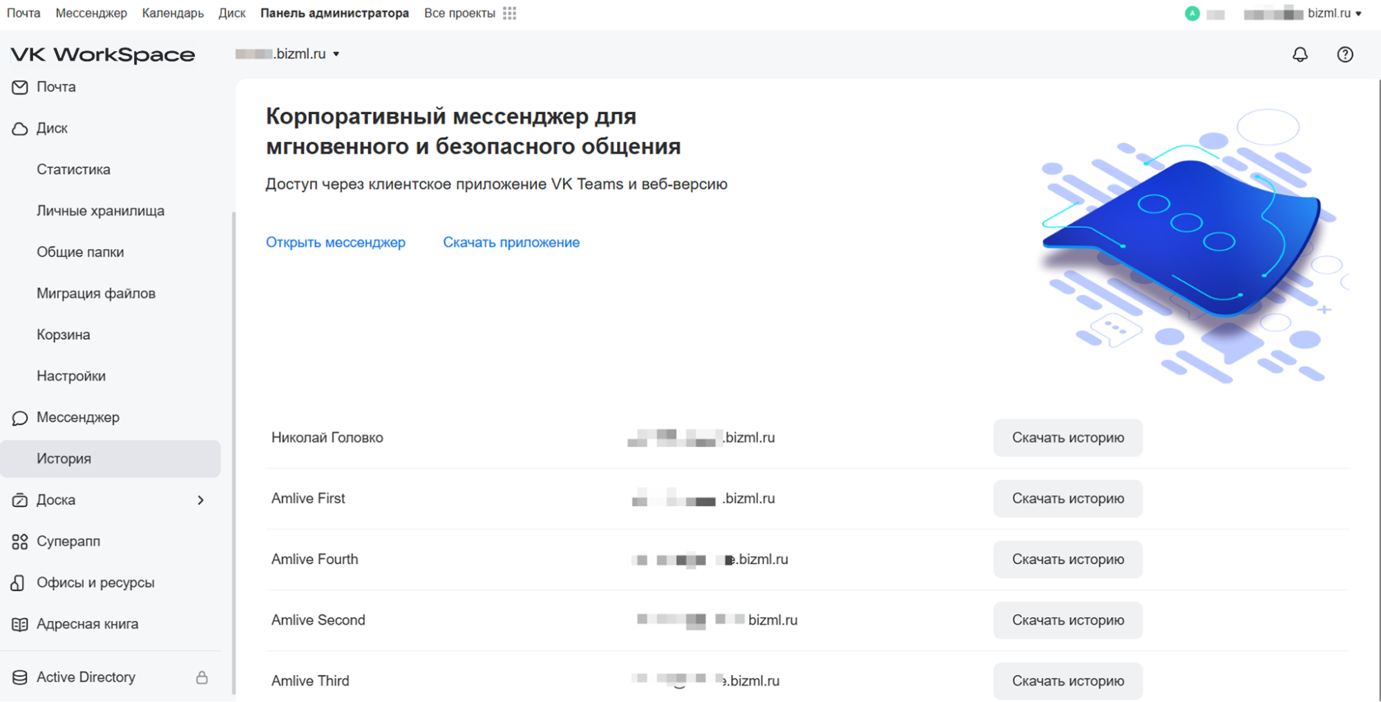 4. 4. Возможности администратора бета-версии VK WorkSpace
